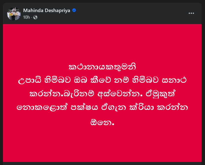 තම සමාජ ජාල ගිණුමේ සටහනක් තබමින් ඔහු මෙම අදහස් පළ කර ඇත.